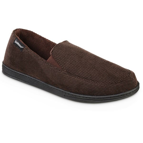 Mens Microterry and Waffle Travis Moccasin Slippers 4000. Large selection of mens and womens slippers. Isotoner Mens Heather Knit Preston Hoodback Slippers.
